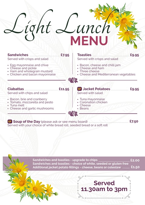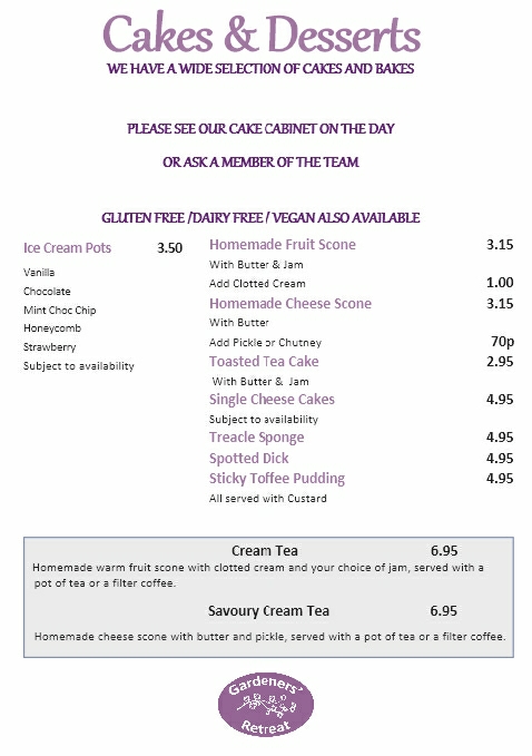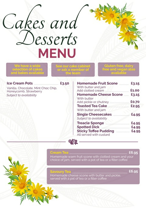 BREAKFASTS • LUNCHES • TEAS AND COFFEES • CAKES